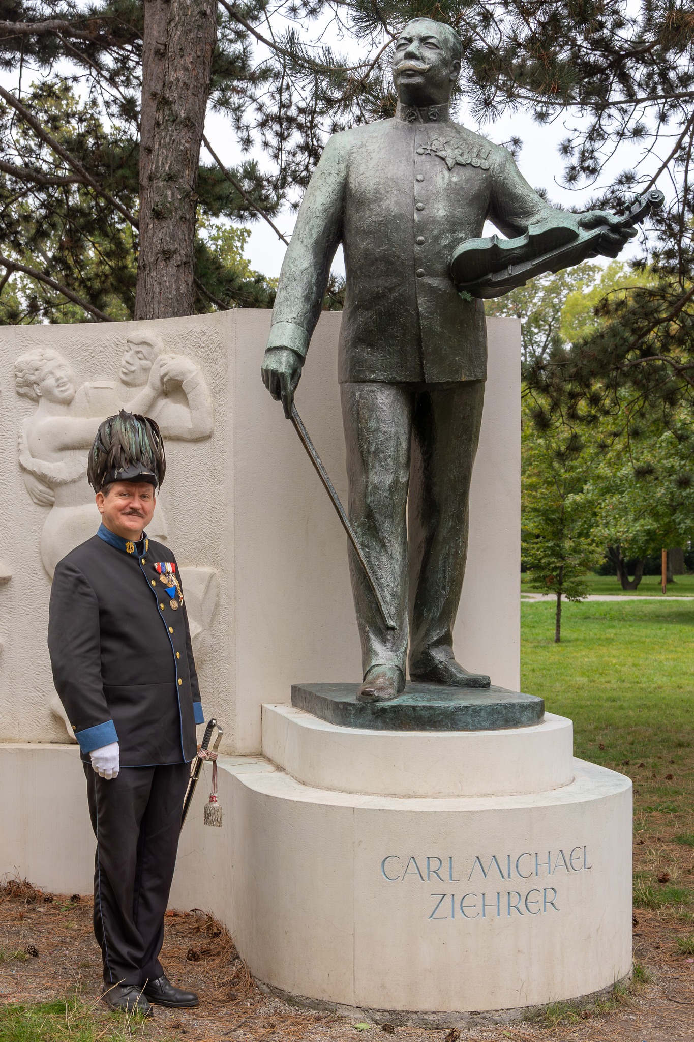 Wir gratulieren herzlichst! Das Foto zeigt ihn in der Prater Hauptallee bei der Statue des berühmtesten Vorgängers, Carl Michael Ziehrer, dessen Erbe heute noch von der Carl Michael Ziehrer-Stiftung / Ziehrer-Foundation gepflegt wird.