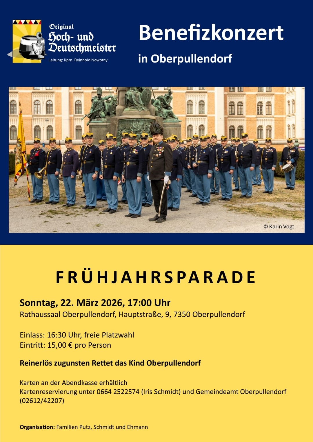 Herzliche Einladung zum "Frühjahrsparade"-Konzert der Original Hoch- und Deutschmeister in Oberpullendorf (Burgenland) am 22. März 2026 im Rathaussaal.